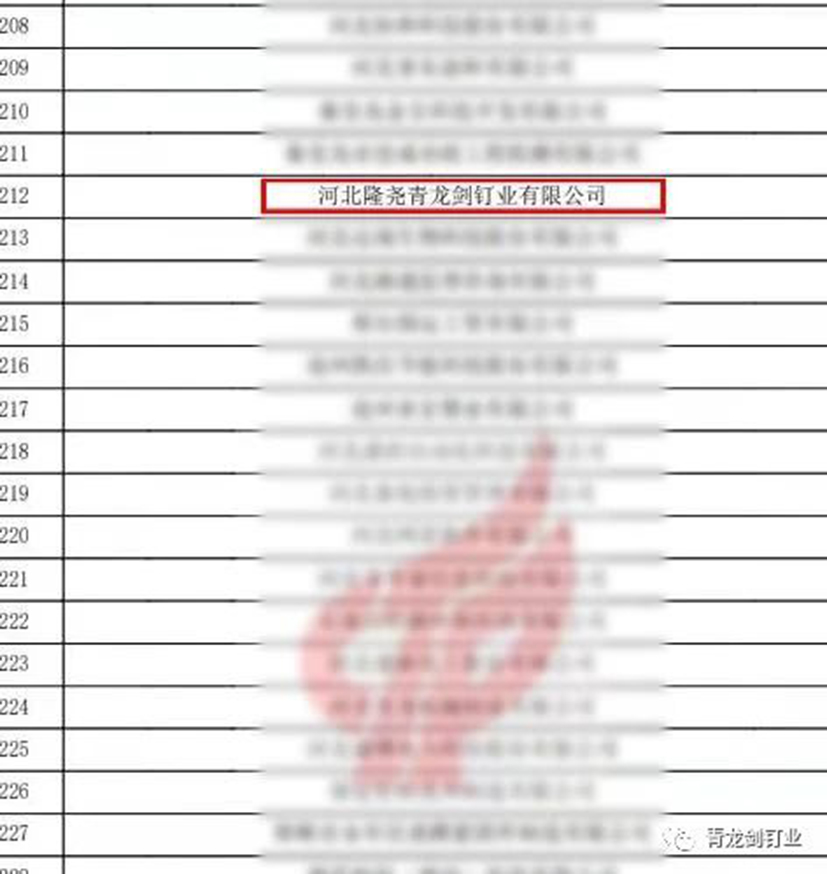 青龍劍釘業(yè)被認(rèn)定為國家級高新技術(shù)企業(yè)
