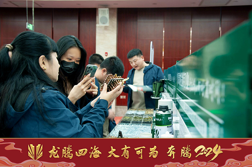 會議間隙,經(jīng)銷商參觀公司產(chǎn)品展區(qū),對公司推出的新產(chǎn)品頗感興趣,并咨詢、拍照。