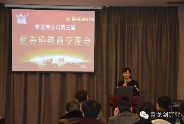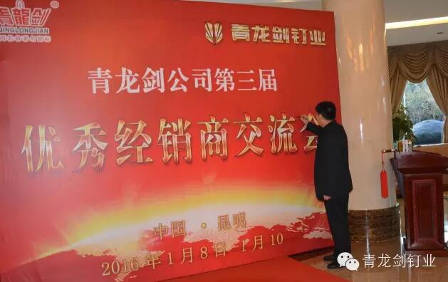 公司董事長馬志華對全國經銷商的到來表示誠摯的感謝。——“感謝各位經銷商來參加2016年度青龍劍公司第三屆優秀經銷商交流會,歡聚一堂共同探討青龍劍釘業發展大計”。