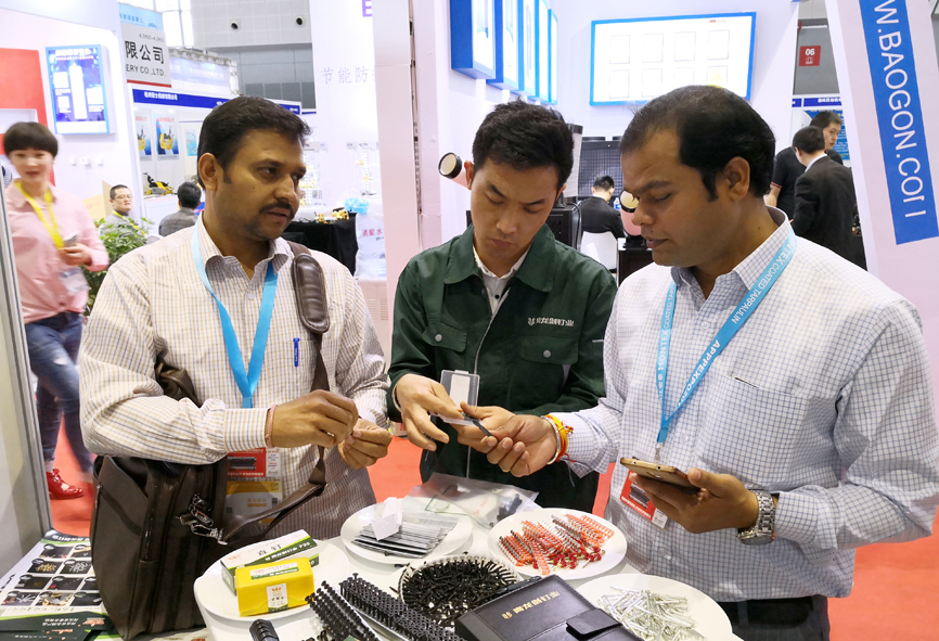展會上展示了青龍劍釘業的全系列產品,裝修用釘、建筑用釘、螺絲釘。并推出新產品,鏈帶干壁釘、高強度連發射釘、吊頂一體射釘。在青龍劍工作人員的講解并演示下,吸引了眾多參展者的駐足,對青龍劍產品產生了極大興趣,并進行了詳細咨詢。
